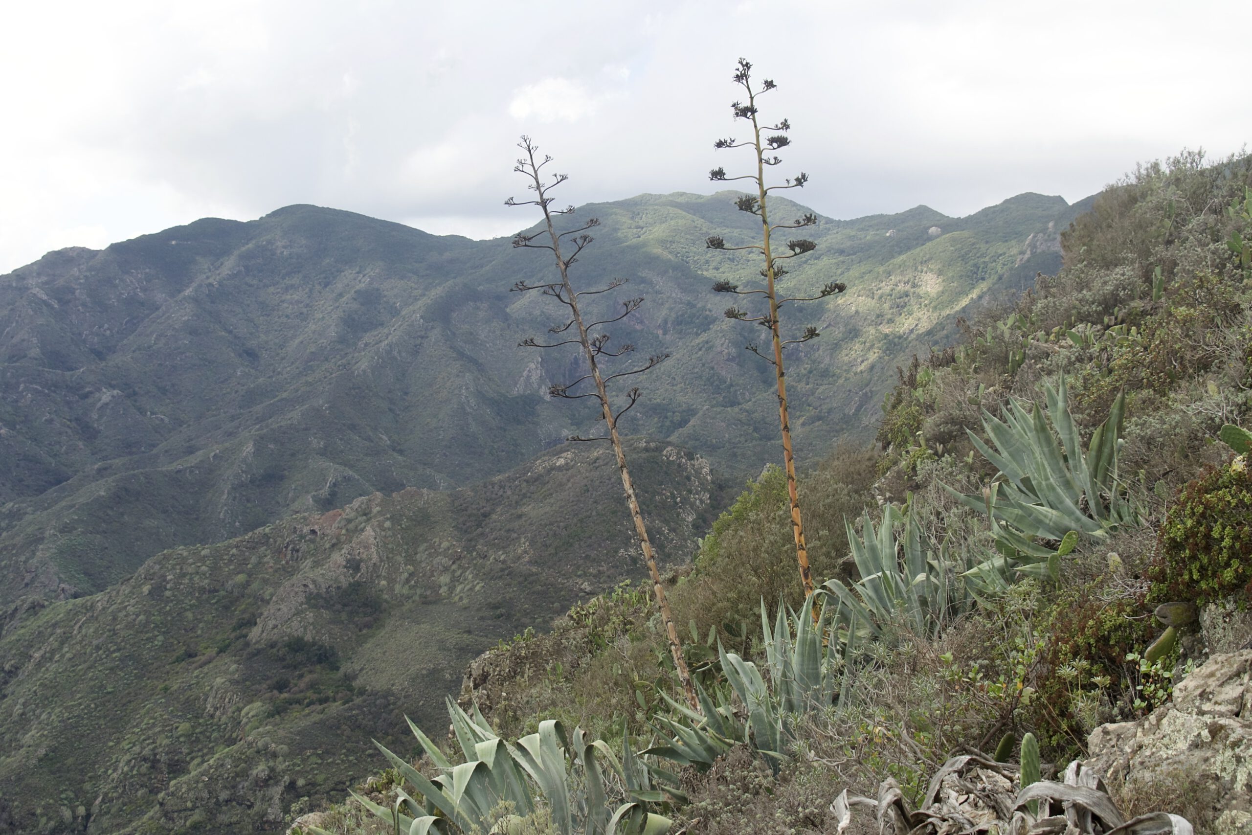 Der Weg war richtig schön und interessant, immer wieder hatten wir fantastische Ausblicke auf das Anaga Gebirge, auf ein Meer aus Sukkulenten und Kakteen unterschiedlicher Arten. Einige Kakteen blühten sogar. Manchmal hatten wir das Gefühl, auf einer Wanderung in Mexiko unterwegs zu sein. Wir sahen Lorbeer, Thymian und Agaven am Wegesrand.