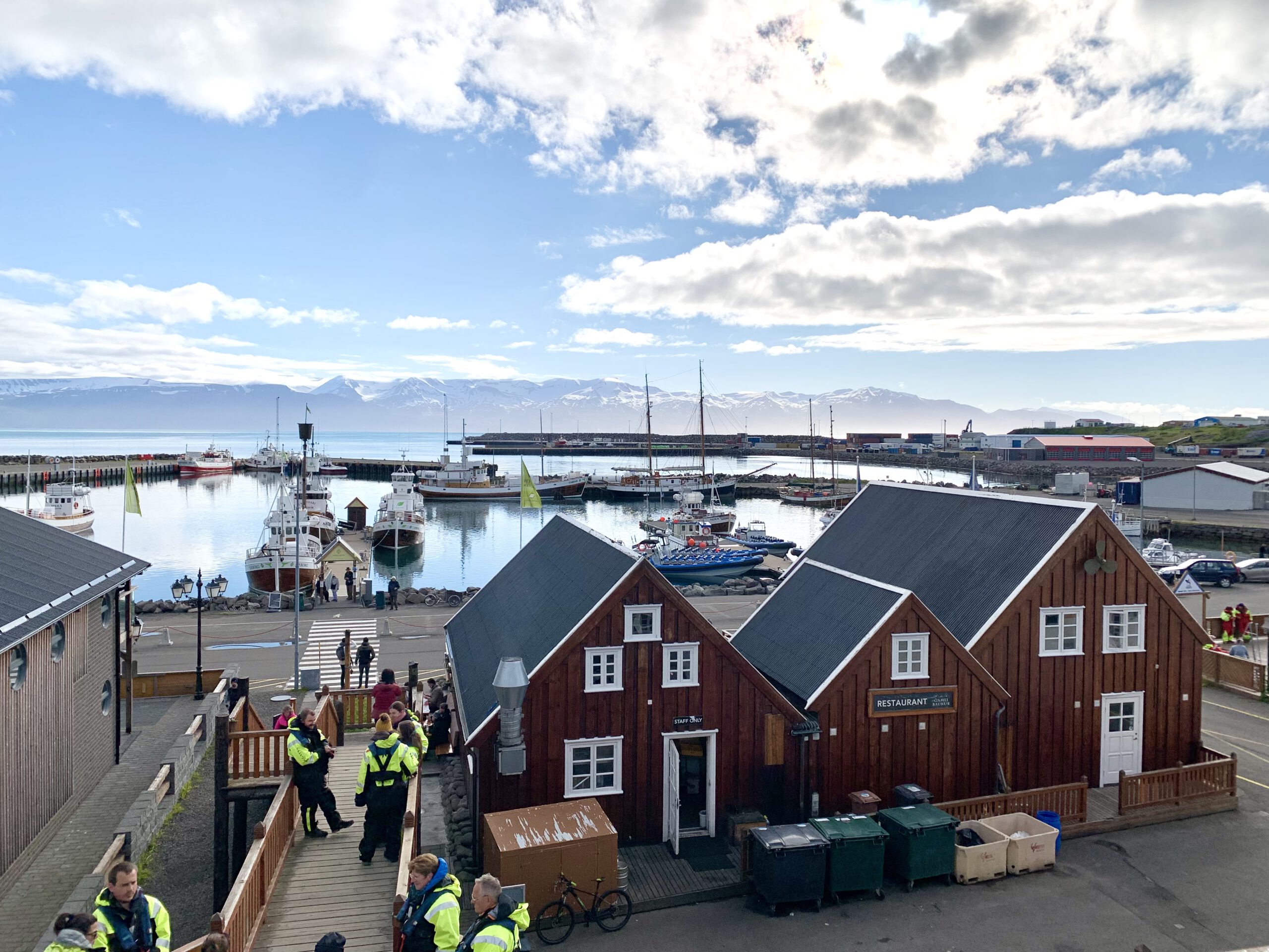Heute haben wir es etwas ruhiger angehen lassen. Wir haben gegen 8 Uhr gefrühstückt und dann den Vormittag im Aufenthaltsbereich vor unserem Zimmer verbracht. Für den Nachmittag hatten wir eine Walbeobachtungstour im 40 Kilometer entfernten Husavik gebucht, die aber erst um 16 Uhr startete. Bis dahin hatten wir dann also noch etwas Zeit. Ursprünglich wollten wir auf dem Weg dorthin über die 1, die nordwestlich des Myvatn See verläuft und dann die 862 zu den Wasserfällen Dettifoss und Selfoss, sowie der Asbyrgi Schlucht fahren. Aber bei genauerem Überlegen und der Tatsache, dass man auf isländischen Straßen nie so schnell voran kommt, wie Google Maps das berechnet, haben wir uns dagegen entschieden und auf morgen verschoben. Morgen wird sowieso nur gefahren, da lässt sich so ein Stopp gut zur Auflockerung einbauen.