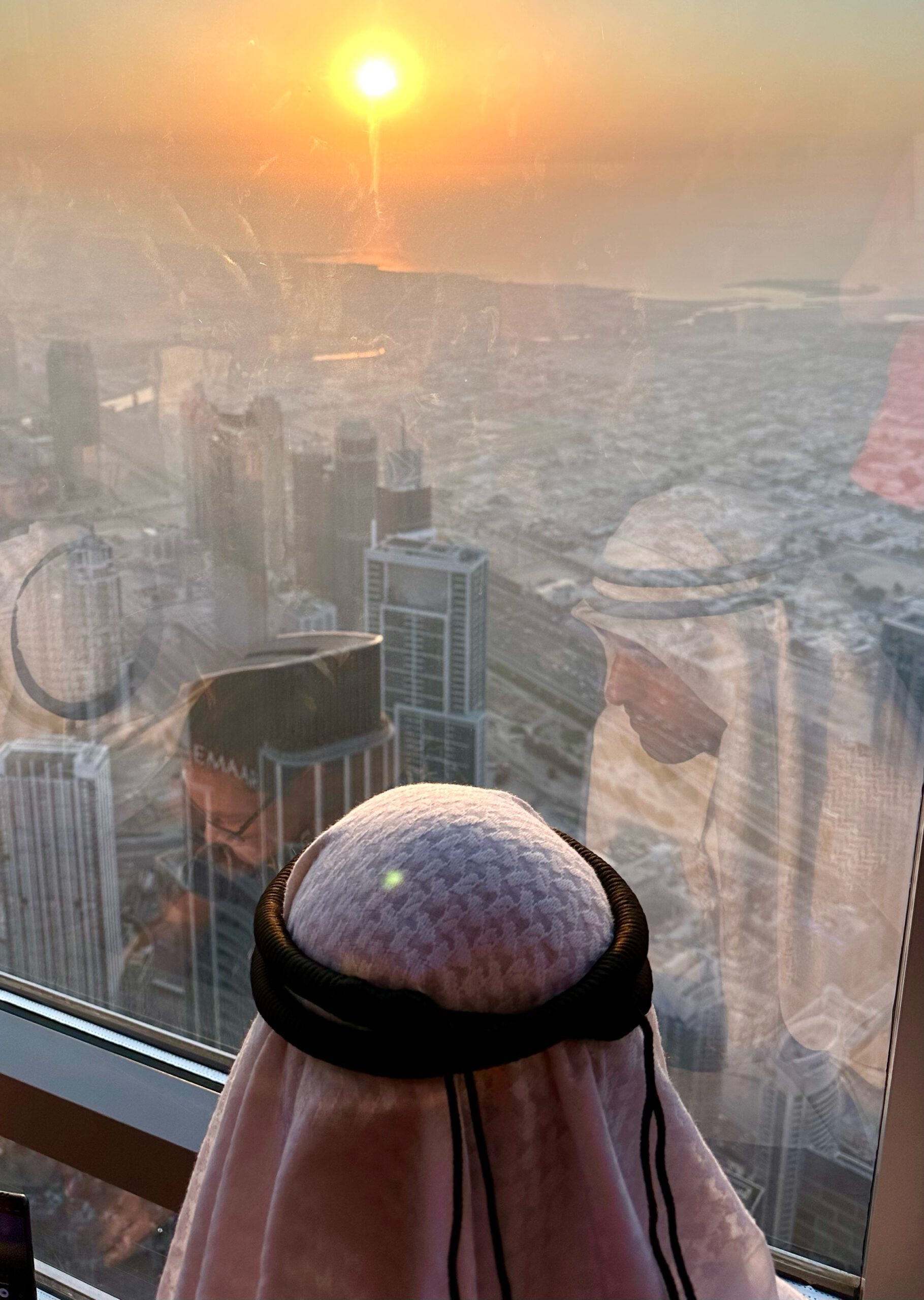 Danach sind wir dann zum Burj Kalifa gegangen und haben insgesamt 4 Stunden auf diesem beeindruckenden Gebäude verbracht. Zu Anfang gab es in einem Warteraum arabischen Kaffee, sowie Datteln und Gebäck. Danach wurden wir mit vielen Informationen über den Bau des Burj Kalifa versorgt. Der Fahrstuhl fuhr uns dann innerhalb weniger Minuten in das 148. Stockwerk auf ca. 555 m.