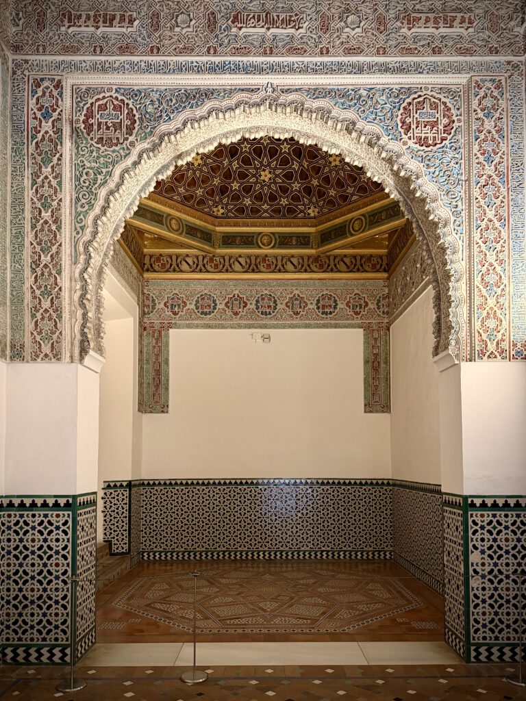 Die vielen bemalten Fliesen und reich verzierten Wände waren schon sehr interessant und erinnerten sehr an die Alhambra in Granada, der maurische Einfluss war unverkennbar.
