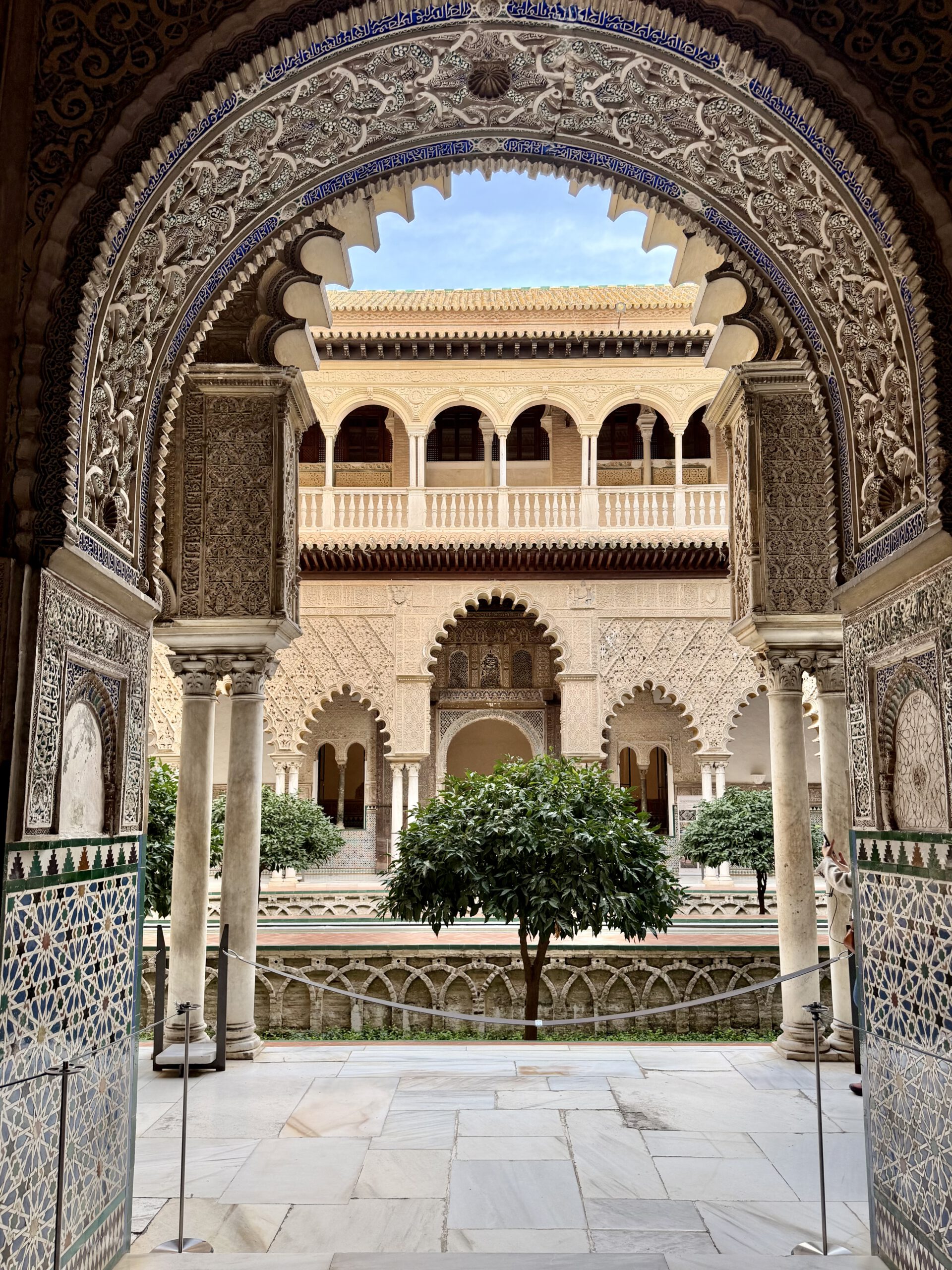 Nach der Schule haben wir uns dann den Königspalast in Sevilla angeschaut, für den wir vor zwei Tagen online Tickets erstanden hatten. Unser Ticket beinhaltete einen Audio-Guide, doch den haben wir schon nach wenigen Minuten ausgeschaltet, weil er uns von der Beschreibung nicht gefallen hat.