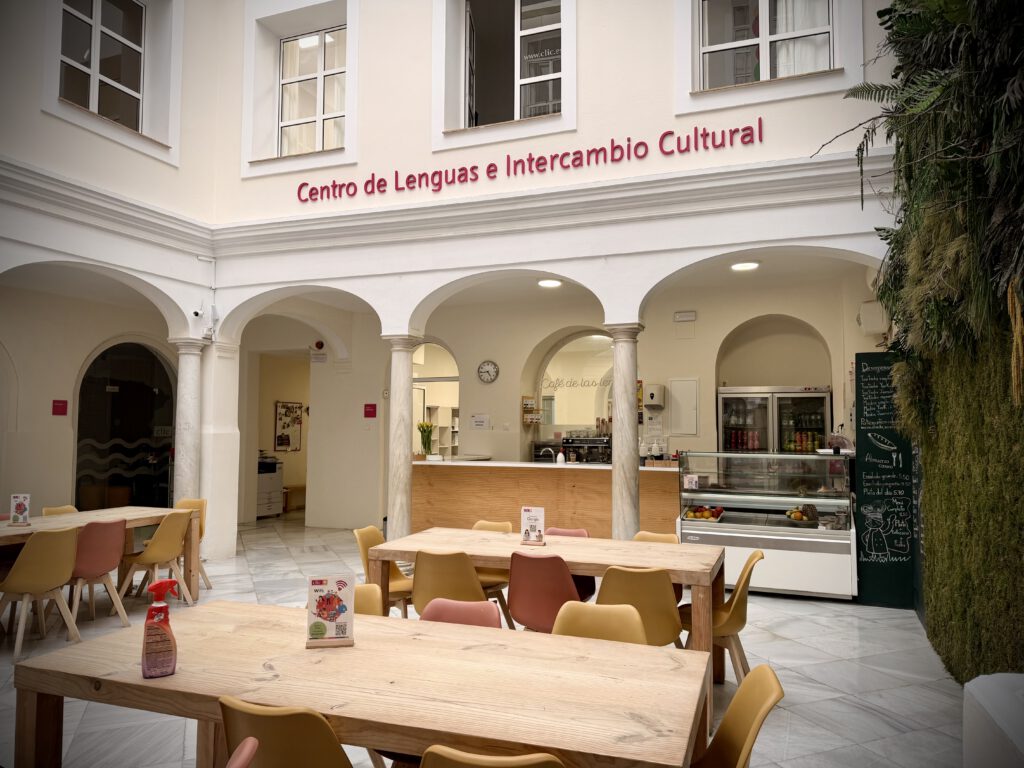 Um 17 Uhr sind wir dann mit Jule und ihrer Freundin verabredet gewesen, die witzigerweise auch gerade in Sevilla waren. Wir sind in ein Café in der Nähe der Kathedrale gegangen und haben sehr nett zusammen geklönt. Leider hatten wir nur eine gute Stunde Zeit, denn für heute Abend hatten Sibylles Mitschüler spontan einen gemeinsamen Abschiedsabend geplant. Um 18 Uhr 30 haben wir uns mit den anderen zum Essen in einer Tapasbar getroffen, die Sibylle und ich auch noch nicht kannten. Es waren viele Nationen vertreten: Holländer, Schweizer, Amerikaner, Deutsche, Schweden und Engländer. Gesprochen wurde darum natürlich Englisch, da das alle verstehen. Es war ein sehr netter und kurzweiliger Abend, der erst durch die Bedienung unterbrochen wurde, die uns nach 1 1/2 Stunden quasi aus dem Lokal geschmissen hat, weil die Tische wieder reserviert waren. Wir sind dann in eine andere Bar gezogen und durften dort oben im Separee sitzen.