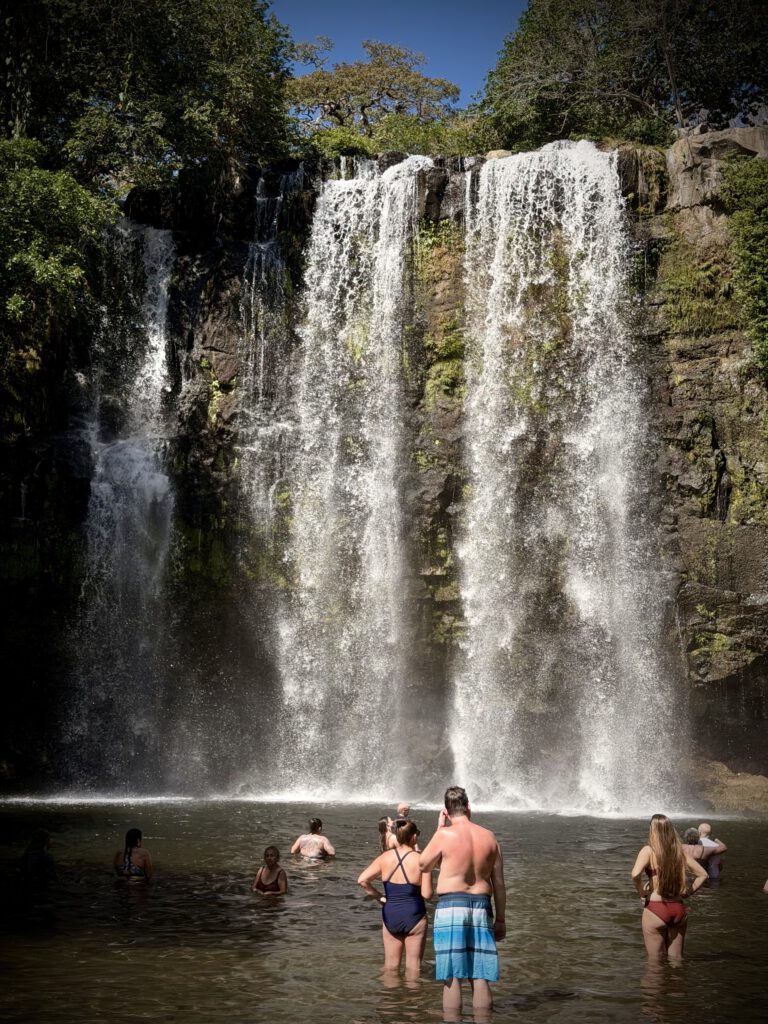 Der Parkplatz füllte sich schnell und der Strand unten am Wasserfall war schon ziemlich voll. Der Wasserfall an sich war sehr schön, es war nur ein wenig zu touristisch. Wir haben uns dann schnell wieder auf den Rückweg gemacht und kurz vor dem Parkplatz noch einen Leguan gesehen, der in der Sonne lag.