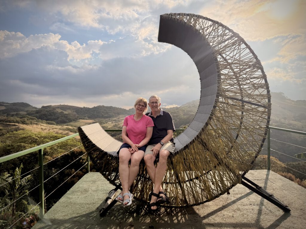Letzte Nacht haben wir beide ziemlich schlecht geschlafen. Unsere Unterkunft, die Vida Aventura Ranch, liegt auf etwa 500 – 600 Metern und inmitten eines sehr windaktiven Gebietes. Nicht umsonst sind ganz in der Nähe ca. ein Dutzend Windräder aufgestellt worden. Die Geräusche des Windes selber und herumwirbelnder Gegenstände draußen haben immer wieder unseren Schlaf unterbrochen. Außerdem hatten wir einen Gecko im Zimmer, der es sich hinter oder in der Klimaanlage heimisch gemacht hatte. Er gab auch immer mal wieder quiekende Laute von sich.