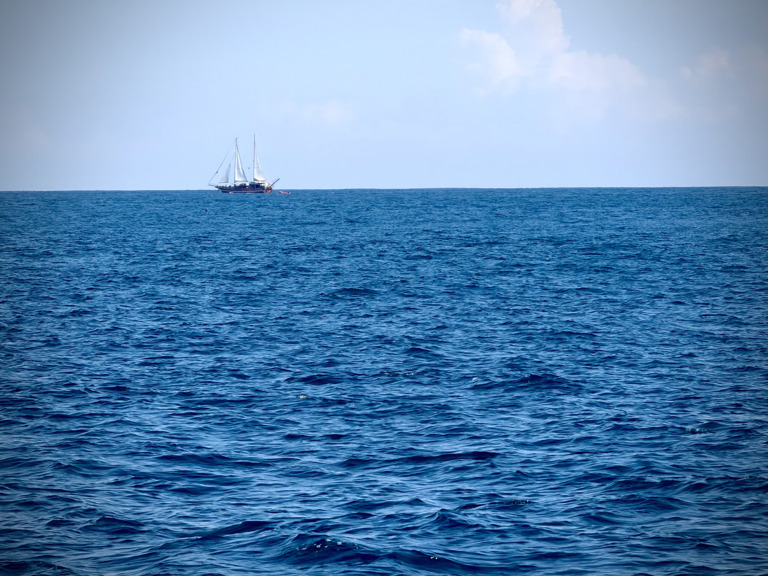 Wir wurden von einem Touristen-Bus abgeholt und hinunter zur Marina gefahren. Im Hafen wurden unsere Daten überprüft und dann ging es auch schon auf den Katamaran, zu unser Sundowner-Tour. Es war ein sehr großer Katamaran und im ersten Moment waren es eigentlich viel zu viele Menschen. Rund 150 Personen passten auf das Boot, es waren zum Glück nur 100, die sich auf zwei Decks verteilten. Aber das Personal war super eingespielt und alle Gäste waren ganz gechillt. Es gab keine Probleme und wir konnten alle die Tour genießen. Bootfahren ist ja eigentlich immer eine schöne Sache.