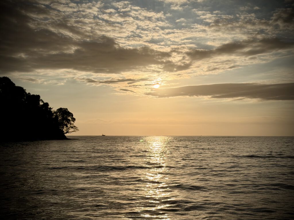 Den Sonnenuntergang erlebten wir dann bereits kurz vor dem Hafen. Nach dem wir dann von Bord gingen und unseren Bus suchten, wurde es etwas chaotisch. Es gab Probleme bei der Zuordnung der Gäste zu den Booten und unser Busfahrer vom Hinweg war nicht mehr da. Wir hatten erwartet, mit ihm auch zurück zu fahren, weil er uns extra seinen Namen genannt hatte. Doch letztlich fanden wir unseren Bus und kamen in unserer Unterkunft an. Endlich im Zimmer, sind wir dann ziemlich erschöpft ins Bett gefallen.