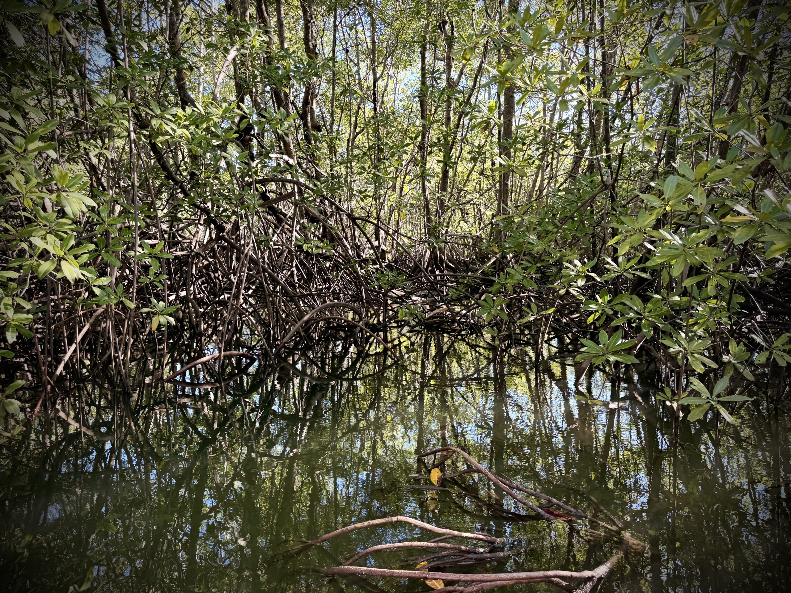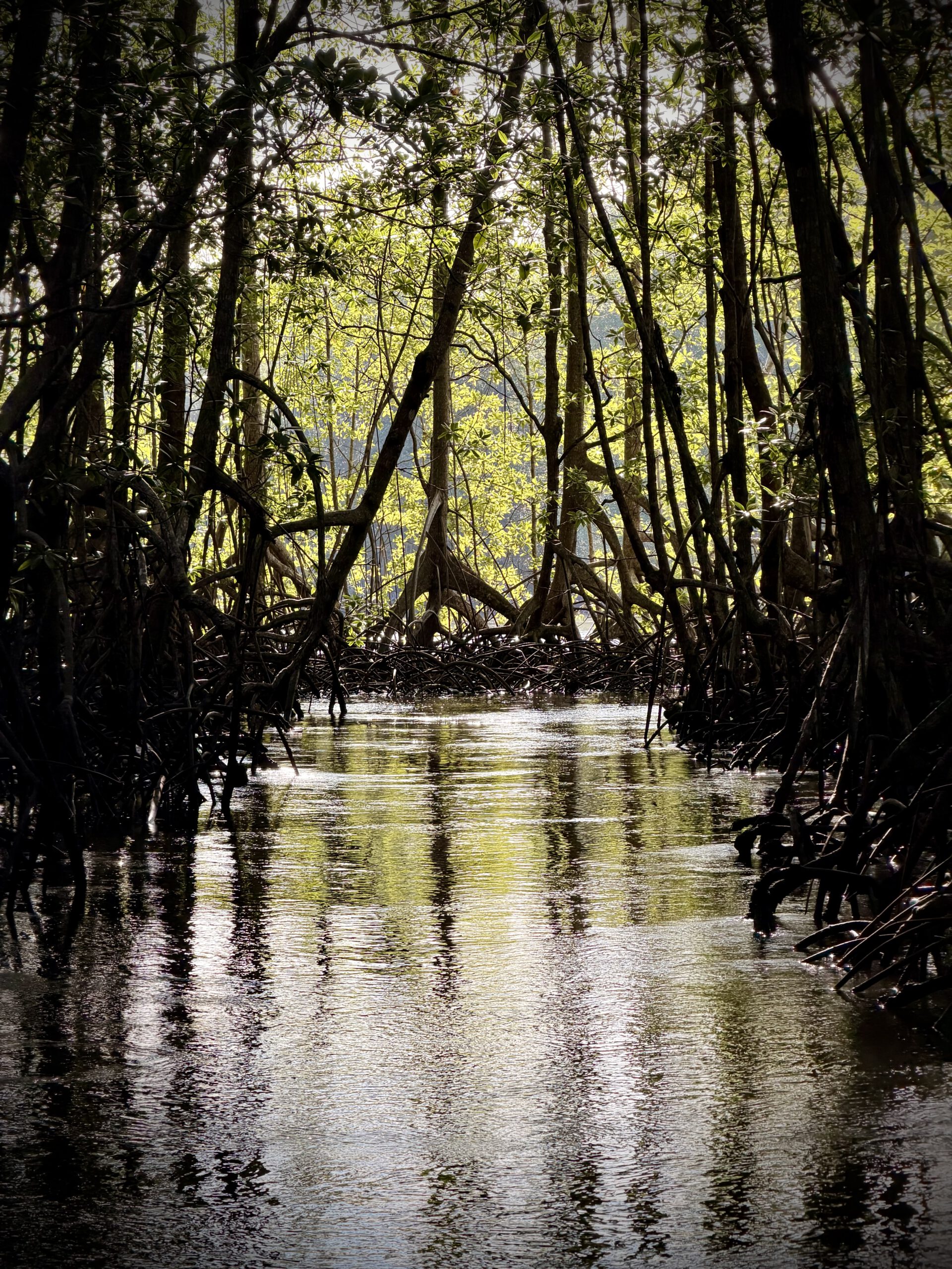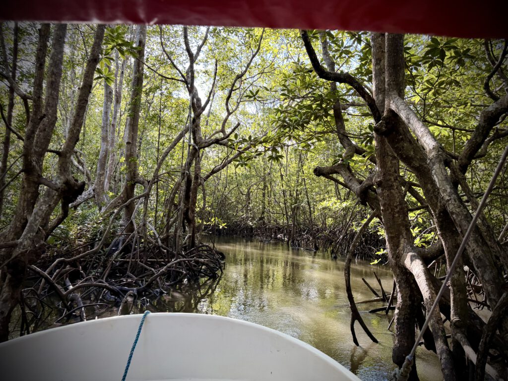 Es war Flut und die Mangrovenwurzeln waren dieses Mal viel mehr mit Wasser bedeckt, während sie auf der Hinfahrt noch deutlich sichtbar waren. Als kleines Extra haben wir dann noch eine Fahrt durch die Mangroven hindurch gemacht. Das war richtig spannend und vor allem unerwartet. Ein Wunder, dass sich der Kapitän da nicht verfahren hat.
