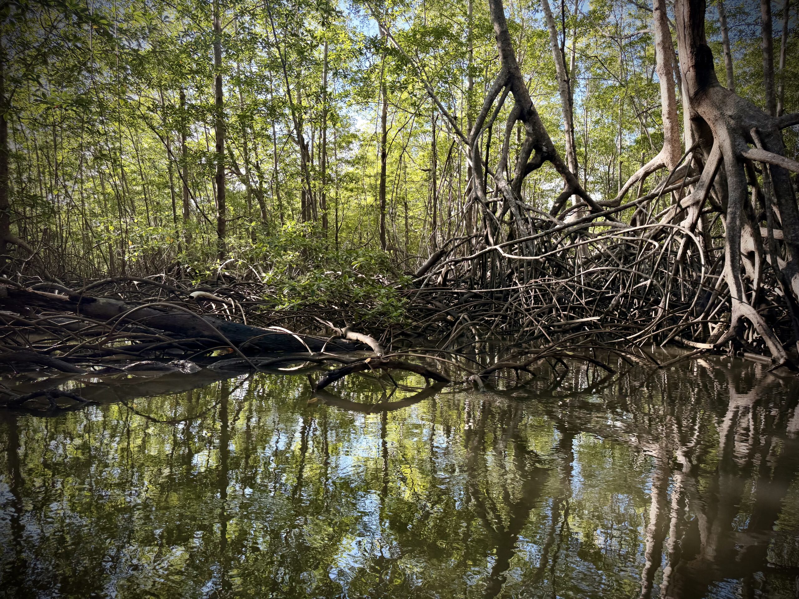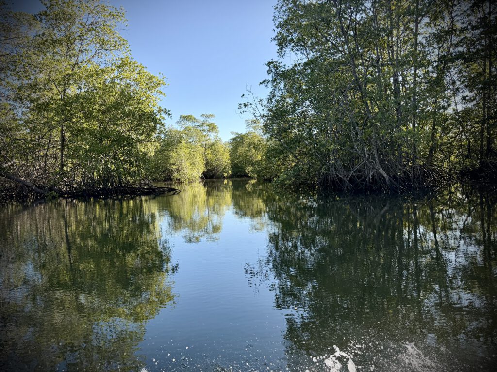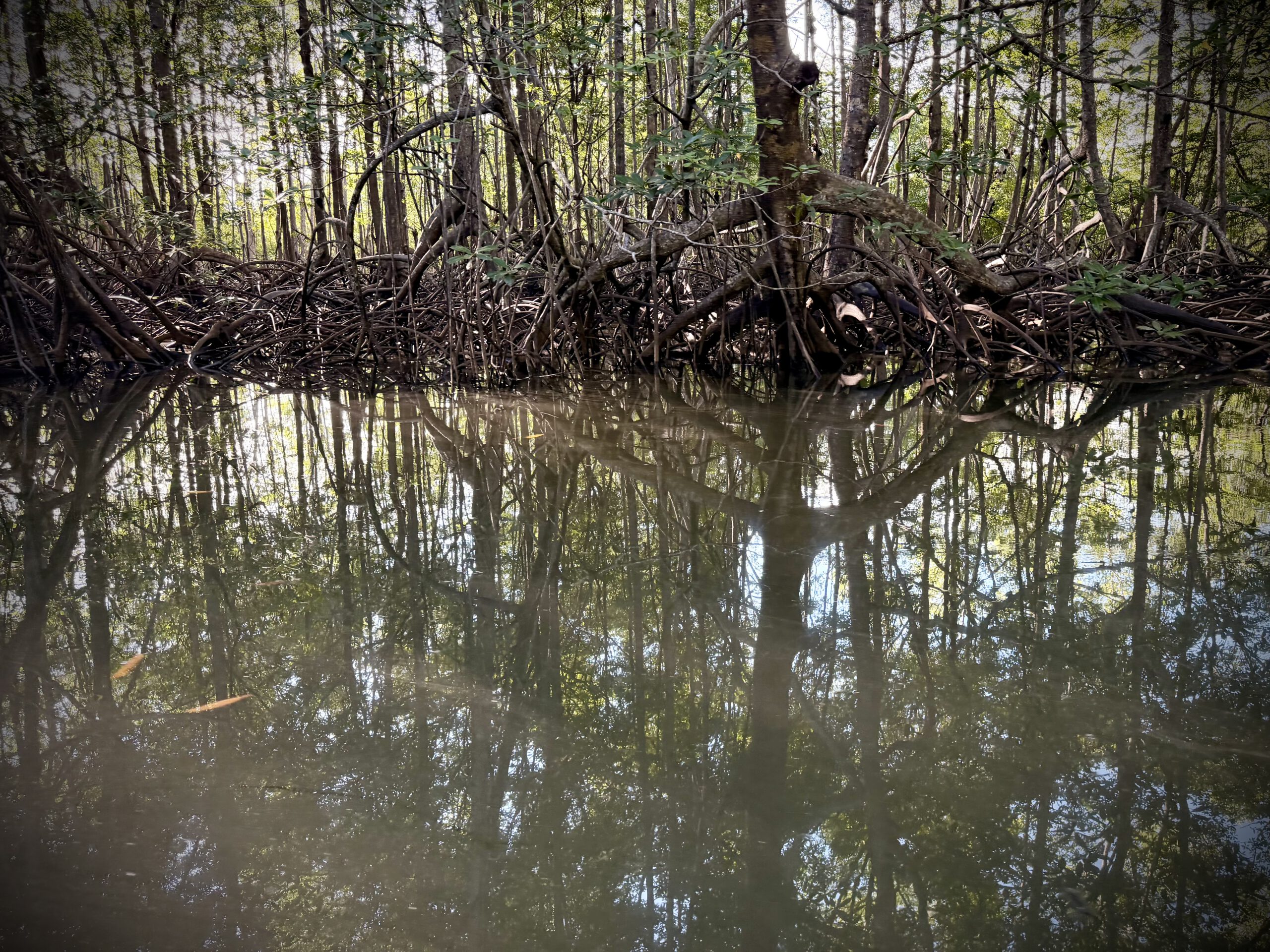 Es war Flut und die Mangrovenwurzeln waren dieses Mal viel mehr mit Wasser bedeckt, während sie auf der Hinfahrt noch deutlich sichtbar waren. Als kleines Extra haben wir dann noch eine Fahrt durch die Mangroven hindurch gemacht. Das war richtig spannend und vor allem unerwartet. Ein Wunder, dass sich der Kapitän da nicht verfahren hat.