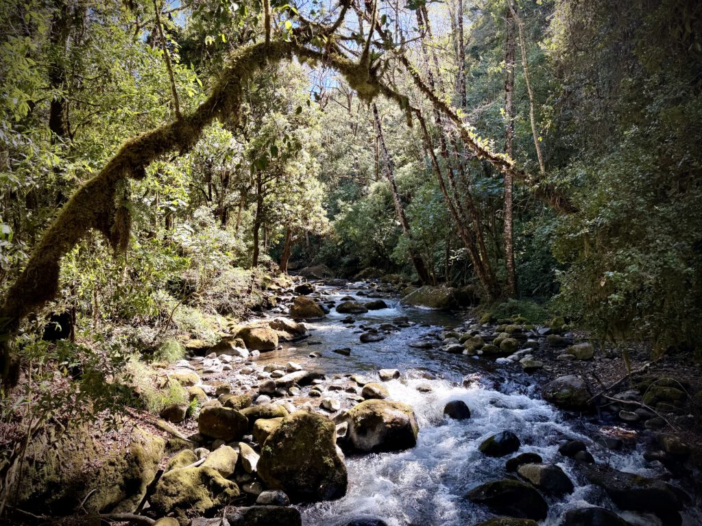 Da der Tag ja gerade erst angefangen hatte, haben wir den Tagesrucksack gepackt und uns auf den Weg zum Vogelpark Batsu gemacht, der rund 2 Kilometer entfernt war. Was wir nicht ganz so bedacht hatten war, dass wir ja hier in den Bergen unterwegs sind und die Straßen und Wege in den Wäldern ein ständiges Auf-und-Ab waren. Wir erreichten nach 2 km in der Sonne dann den Vogelpark und erfuhren, dass es für heute keine Tickets mehr gab. Man hätte diese einen Tag vorab online reservieren müssen. Also sind wir weiter gegangen zum Lauraceas Garden, doch auch da war keiner, der uns in den Garten hineinlassen konnte. Wir hätten erst wieder 200 Meter zurückgehen müssen, um Tickets zu kaufen. Aber von der Straße betrachtet waren wir gar nicht sicher, ob es das gelohnt hätte. Also sind wir weiter gegangen und haben uns auf zum Wasserfall-Trail gemacht.