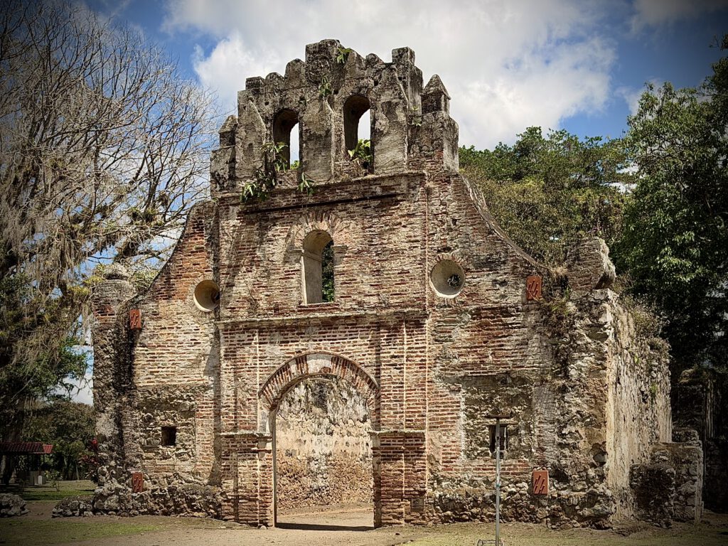 Anschließend sind wir zur Ruina de Ujarras gefahren, sie war nur 5 Minuten von der Plantage entfernt. Weil wir das Auto aber nicht einfach mit unserem ganzen Gepäck auf einem öffentlichen und unbewachten Parkplatz abstellen wollten, sind wir nacheinander in die Kirchenruine gegangen. Zuvor hatten wir gelesen, dass man hier keine Drohne steigen lassen darf. Doch ich habe am Eingang noch mal nachgefragt und habe doch tatsächlich die Erlaubnis bekommen.