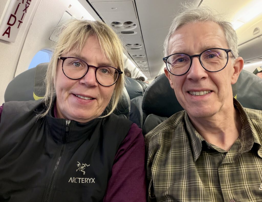 Wir gönnten uns zunächst das Frühstück, das wir aber nur mit mäßiger Freude zu uns nahmen, und warteten dann am Gate auf das Boarding. Leider war die Maschine um einiges kleiner und nur mit 2 3-er Reihen bestückt. Aufgrund der Umbuchung hatten wir auch keine zusammenhängenden Plätze. Aber wir hatten Glück und eine nette Passagierin aus Belgien oder Holland, die jetzt aber in Kanada lebt, tauschte und so konnten wir dann doch zusammen sitzen.